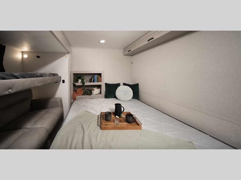 Sleeps 9 Slides 4 Length 42 ft 11 in Ext Width 8 ft 6 in Ext Height 13 ft 4 in Int Height 8 ft 6 in Interior Color Dune Gray Hitch Weight 2800 lbs GVWR 18100 lbs Dry Weight 15560 lbs Cargo Capacity 2540 lbs Fresh Water Capacity 75 gals Grey Water Capacity 87 gals Black Water Capacity 50 gals Tire Size 215/75R17.5"H Furnace BTU 40000 btu Number Of Bunks 1 Available Beds King Refrigerator Type GE Residential Refrigerator Size 21 cu ft Cooktop Burners 4 Number of Awnings 2 LP Tank Capacity 40 lbs. Water Heater Type On Demand Tankless AC BTU 30000 btu TV Info LR 4K Smart LED HDTV, BR 32" 4K Smart TV Awning Info 11' and 20' Electric with Integrated LED Lights Axle Count 2 Washer/Dryer Available Yes Number of LP Tanks 3 Shower Type Standard Similar Floorplans