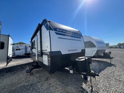 The Springdale Classic travel trailers by Keystone will provide you and your family many great outdoor experiences and it will also be kind to your pocketbook. Each one is constructed with a walkable roof and an I-beam frame with stamped steel cross-members and outriggers for added strength. There are also heavy-duty stabilizer jacks and power tongue jacks outside, along with an XL entry assist handle for added convenience. Each travel trailer includes LED lighting, bedside outlets, and blackout night shades inside that will provide you with more privacy at night.