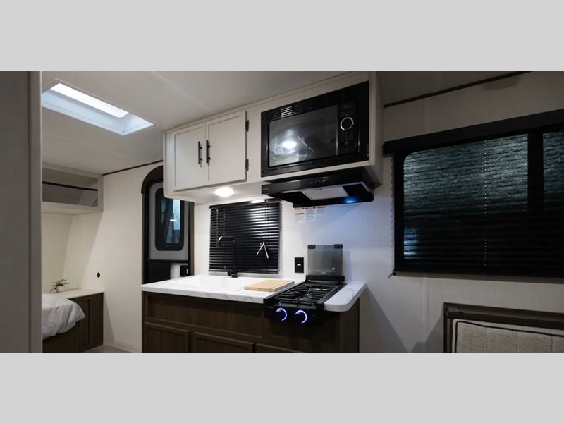 Sleeps 3 Slides 1 Length 20 ft 9 in Ext Width 8 ft Ext Height 10 ft 8 in Hitch Weight 395 lbs Dry Weight 3884 lbs Cargo Capacity 911 lbs Fresh Water Capacity 42 gals Grey Water Capacity 34 gals Black Water Capacity 34 gals Available Beds Camp Queen Bed Refrigerator Type 12V Refrigerator Size 10.6 cu ft Cooktop Burners 2 Number of Awnings 1 Water Heater Type Tankless On Demand AC BTU 13500 btu Awning Info 10' Power Axle Count 1 Shower Type Standard Electrical Service 30 amp Similar Floorplans